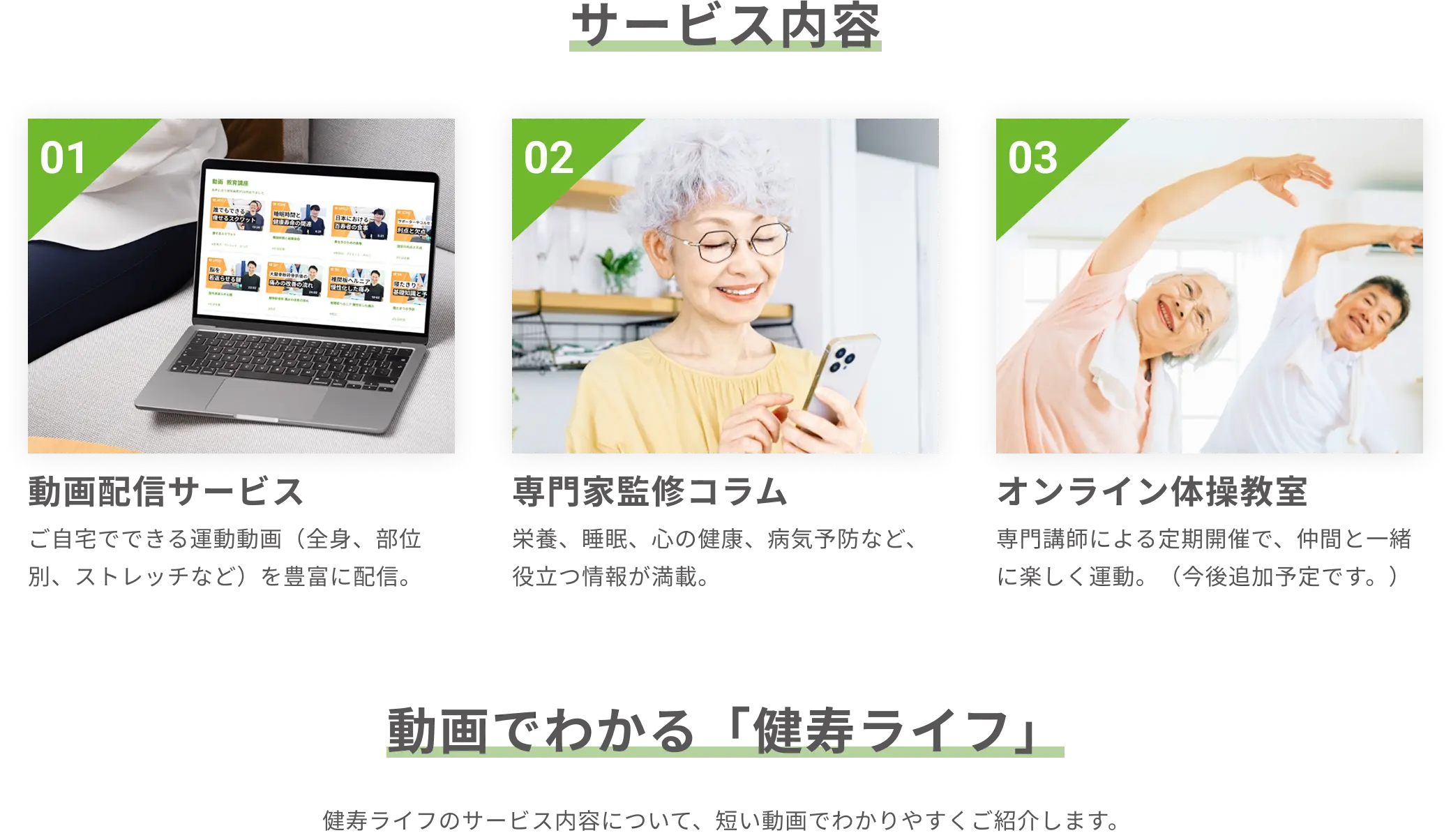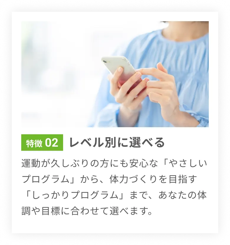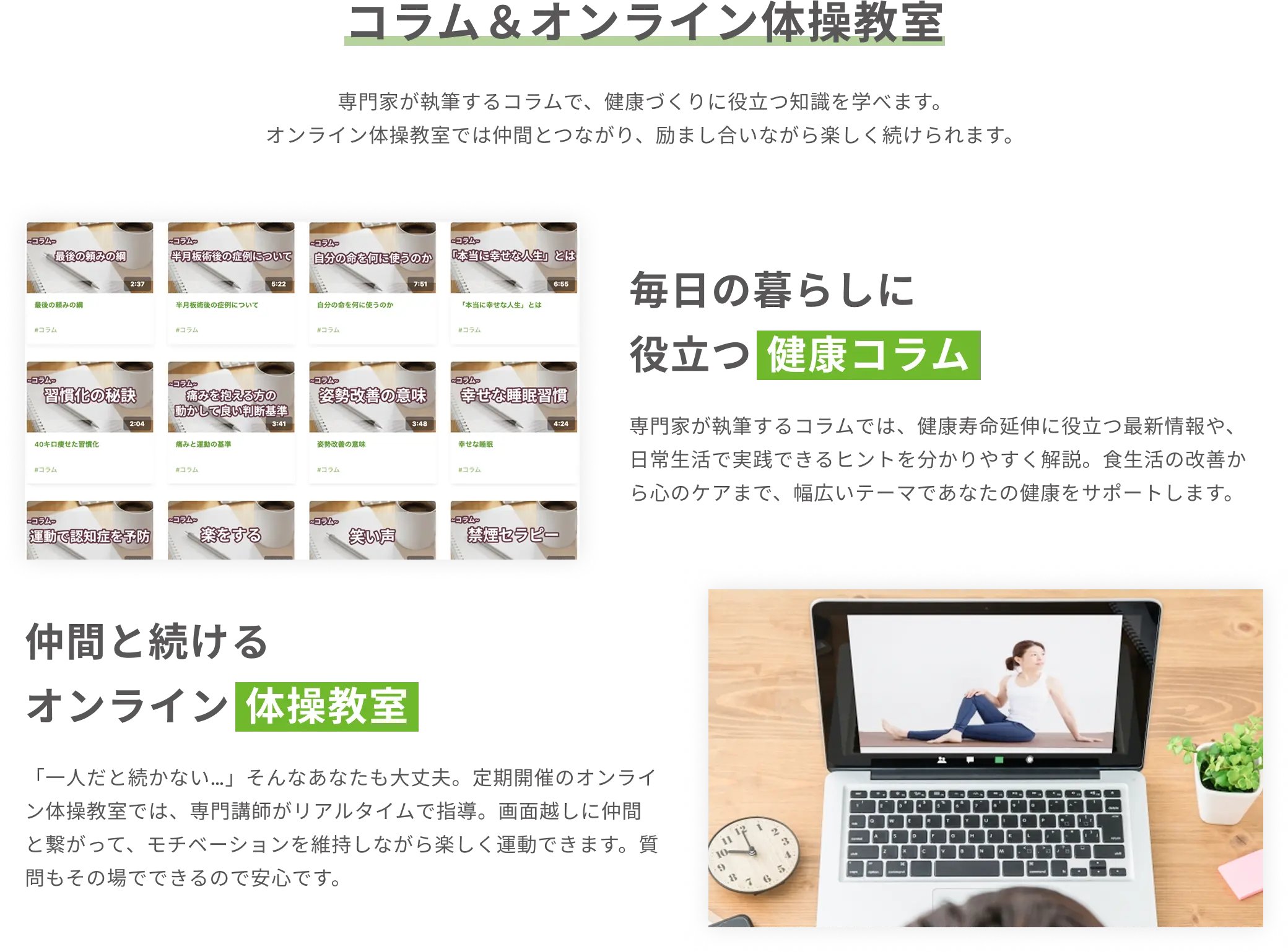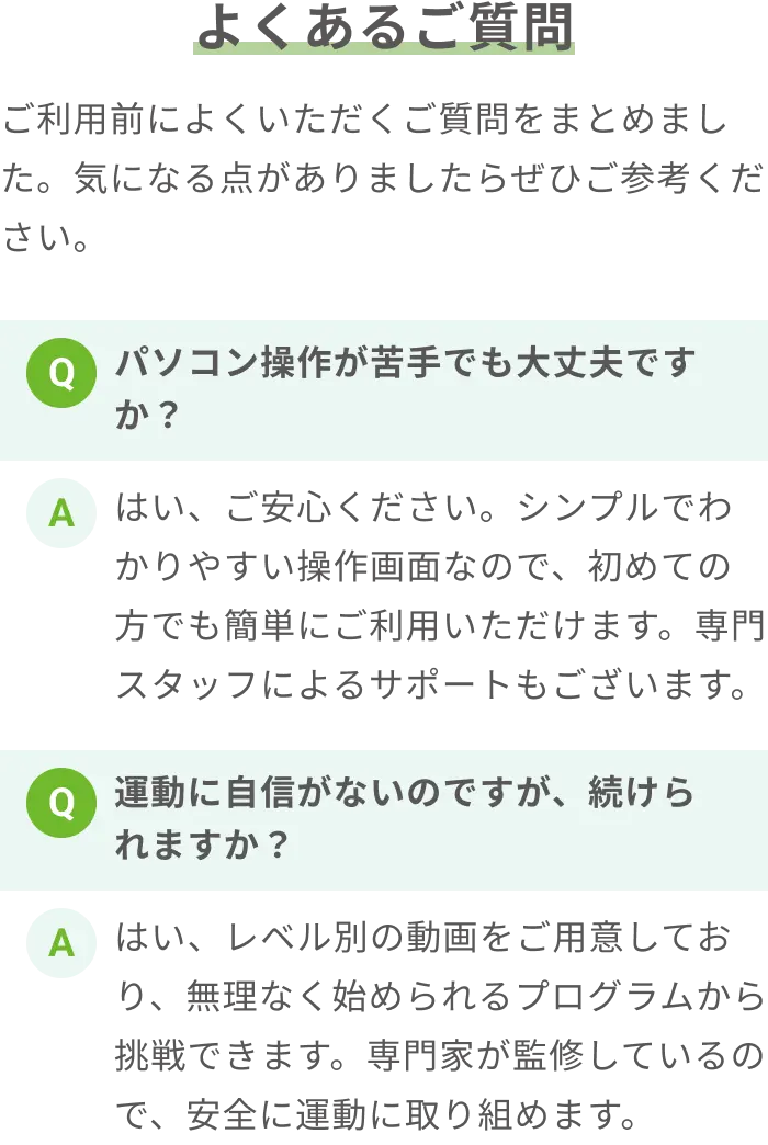 専門家監修の動画・コラム・オンライン体操教室で自宅にいながら無理なく続けられる健康習慣を。